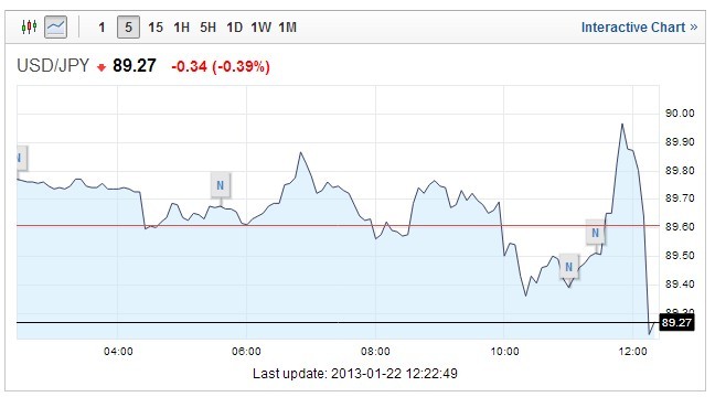 日本經濟部長甘利明在達沃斯表示無意操縱日元。
