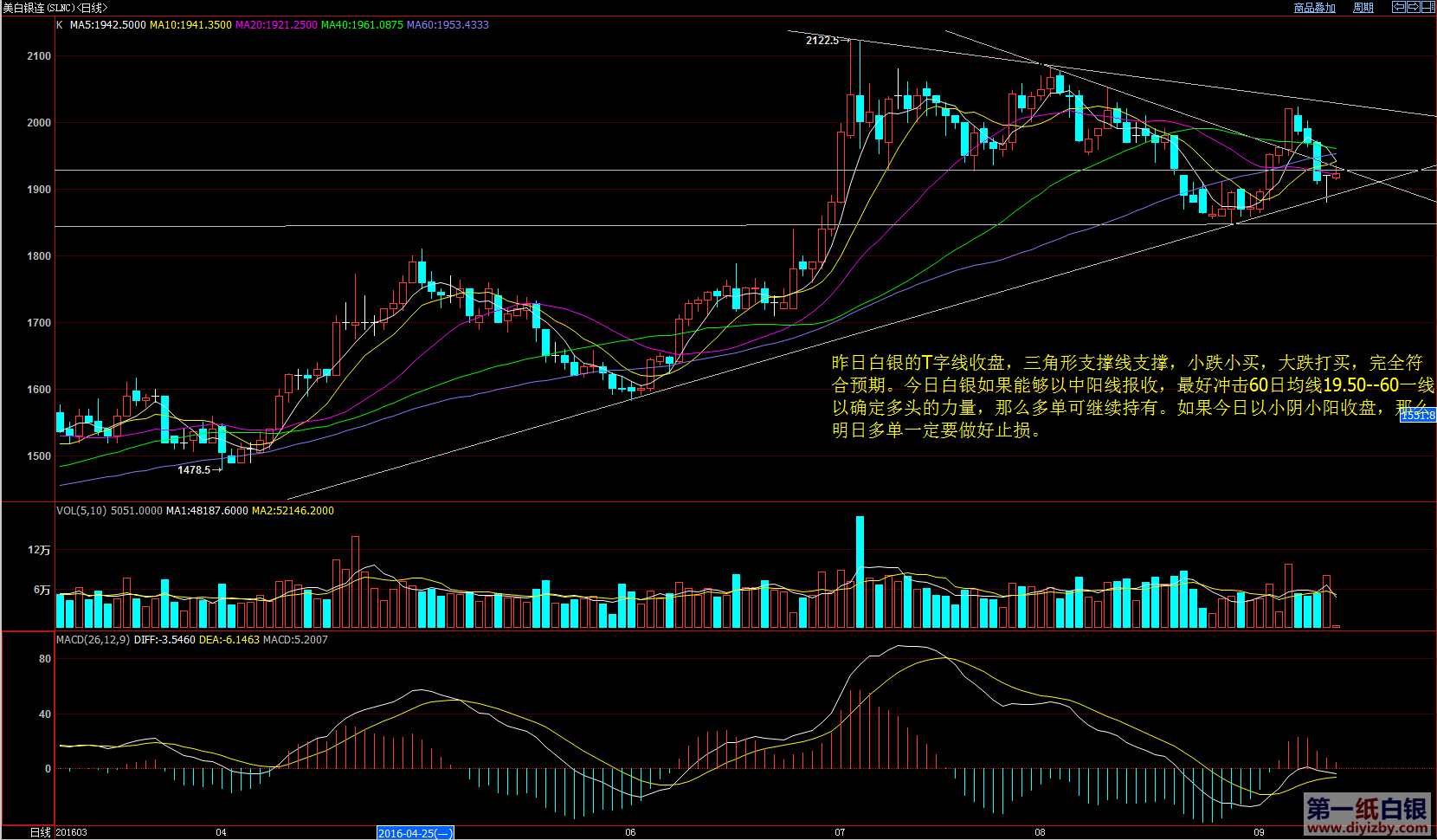 對紙白銀感興趣的朋友可以常來“第一紙白銀分析網(wǎng)”逛逛,我們每天會分析最新的紙白銀價格走勢。 |