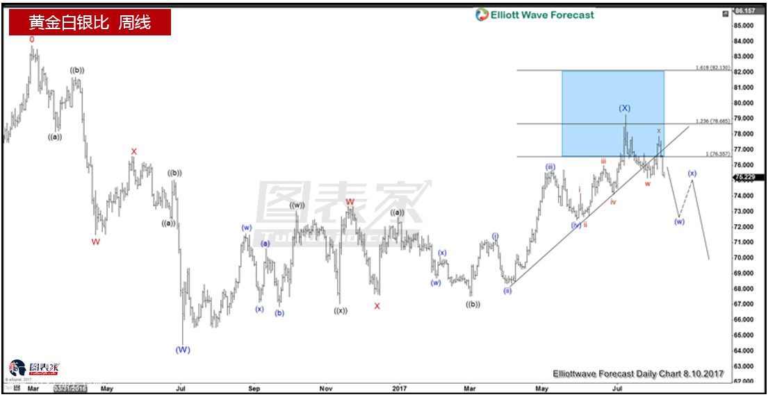 剛剛過去的兩周時間里,黃金和白銀迎來了一波強勢上漲,這波強勢上漲被視為2017年下半年的牛市行情的開啟。不僅僅是消息面下半年將繼續(xù)推升避險情緒,利多貴金屬,技術(shù)面的黃金白銀比例可能走低,也暗示金銀將獲得支撐上線。 2017年下半年支撐黃金白銀上漲的消息面: 首先是朝鮮局勢 上周朝鮮和美國的“親密互動”引爆了整個黃金市場,是上周金銀價格暴漲的主要功臣,然而這樣避險情緒來的塊走的也快,不過即使如此,只要朝鮮問題一朝沒有解決,像上周一樣的行情在未來可能會時常發(fā)生。駐倫敦的獨立貴金屬研究公司Metals Focus Ltd分析師Chirag Sheth在接受從采訪時稱,“目前基本面對金市十分利好,朝鮮的一舉一動都能幫助金價升破1300美元水平,甚至維持在該水平上方。白銀有望圖片17.5美元的阻力水平。” 而伴隨著朝鮮的局勢進一步升級,投資者將重返貴金屬市場以尋求避險,未來6-9個月金價可能升至1400美元/盎司,而白銀有望站在20美元/盎司上方。另外,盡管美聯(lián)儲處在加息周期,但因為通脹數(shù)據(jù)已經(jīng)連續(xù)五個月疲軟,這讓美聯(lián)儲的態(tài)度不得不有所軟化,這對于黃金白銀來說將會形成進一步的支撐。 其次是全球債務危機 著名投資人羅杰斯在接受金之國采訪時表示,“我們很快就要目睹我一生中最可怕的災難了。”羅杰斯解釋說:“我們美國的經(jīng)濟從立國時開始,就是大約每四年就會出一次問題,因此說我們有麻煩,絕不是什么不尋常的事情。”羅杰斯認為,導致2008年金融危機爆發(fā)的關(guān)鍵還是債務的膨脹,而危機之后,債務其實膨脹得更加驚人了。Algebris Investments的蓋羅最近曾經(jīng)在一篇博客當中指出,在過去十年時間當中,全球債務總規(guī)模幾乎是翻了兩番,增長了276%之多,達到了217萬億美元。說到危機爆發(fā)的具體時間,羅杰斯認為最早可能明年就會兌現(xiàn)。 而這樣的危機必然導致整個市場的崩潰產(chǎn)生,此時黃金白銀價格將會在未來幾年將迎來爆炸性上漲。羅杰斯堅信貴金屬的終極避風港地位,這一點與另外一位著名投資人麥嘉華不謀而合,后者判定美國股市已經(jīng)過熱,為了讓自己免受損害,正在購買黃金和白銀。 然后是特朗普的不確定性 此前我們有文章提到過今年特朗普可以說是造成黃金白銀價格上漲的主要功臣,上半年要不是特朗普不斷給黃金白銀提供支撐,面對美聯(lián)儲的瘋狂加息,恐怕黃金根本支撐不住。就拿這次朝鮮局勢升溫來說,也和特朗普脫不了關(guān)系,可以說正是因為特朗普的不確定性,才引發(fā)了當下局面的不可控制。 而且不僅僅是在朝鮮局勢上,通俄門所引發(fā)的國內(nèi)政治危機,民調(diào)下滑所導致的美國民眾對美國未來的擔憂,都是和特朗普脫不了關(guān)系,如今在特朗普的運作下,美國和歐洲國家變的冷漠,和俄羅斯的關(guān)系也變的僵化,在國際市場上美國越來越邊緣化。這些特朗普的“杰作”在未來都可能成為引爆黃金市場的炸彈。 最后除了以上一些原因之外,在需求方面,有專家預期今年印度的黃金需求將復蘇,珠寶首飾銷量同比可能增長6%,而2017年印度黃金進口可能跳漲30%,最高能達到800噸。同時美國國會未能提高美國債務上限的可能性越來越大,導致技術(shù)違約、政府臨時關(guān)門,這使得美國對國家政治的擔憂越來越重,這些都將在未來成為黃金價格大漲的重要導火索。 2017年下半年黃金白銀比例走低暗示金銀價格上漲: 下圖為黃金白銀比以及國際黃金和國際白銀的月線圖。黃金白銀比與黃金價格以及白銀價格均呈負相關(guān)。 黃金白銀比在2008年10月-2011年4月下跌時,黃金和白銀均上漲。反之,當黃金白銀比在2011年4月-2016年2月上漲時,黃金和白銀價格均下跌。 由于目前黃金白銀比跌破上升通道下軌,其未來可能下行,這將支撐貴金屬價格走高。 下圖為黃金白銀比的周線走勢。黃金白銀比正處于自2016年2月29日高點83.68以來的調(diào)整周期,并且看起來已經(jīng)在79.257處結(jié)束了(X)浪。由于價格近期的反彈低于79.257,因此若黃金白銀比維持在2016年2月29日的高點之下,則預期其將形成更大級別的3浪,至少回落至2016年7月4日的低點。 如果黃金白銀比確實下行,則預期黃金和白銀價格將在未來幾個月受支撐上行。 更多紙白銀相關(guān)新聞請看:紙白銀行情新聞
