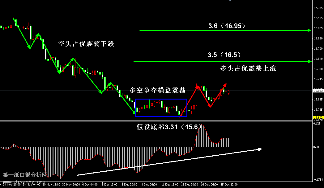 技術(shù)僅僅是基于概率論和統(tǒng)計學(xué)的一種綜合分析手段,絕非預(yù)測。所以技術(shù)分析是在考慮做好止損的情況下去博取大概率事件,投資不可過于迷信技術(shù)分析。(短線操作請一定做好止損,一旦被損,代表分析師基于概率和統(tǒng)計的技術(shù)分析不適用于當(dāng)前行情) 1、紙白銀短線看點位,中線做方向。 2、以上所有價格為工商銀行買入價,即紙白銀低價。進(jìn)倉點位要再加點差(各銀行點差不一),出倉則不要。 3、第一紙白銀給出的所有建議僅供投資者參考,不作為下單絕對依據(jù),切勿過于依賴。 4、北京時間08:55發(fā)布此文章。 5、上一交易日白銀價格分析情況:(12月15日)白銀多空逐漸轉(zhuǎn)變 靜待回踩驗證是否反轉(zhuǎn)