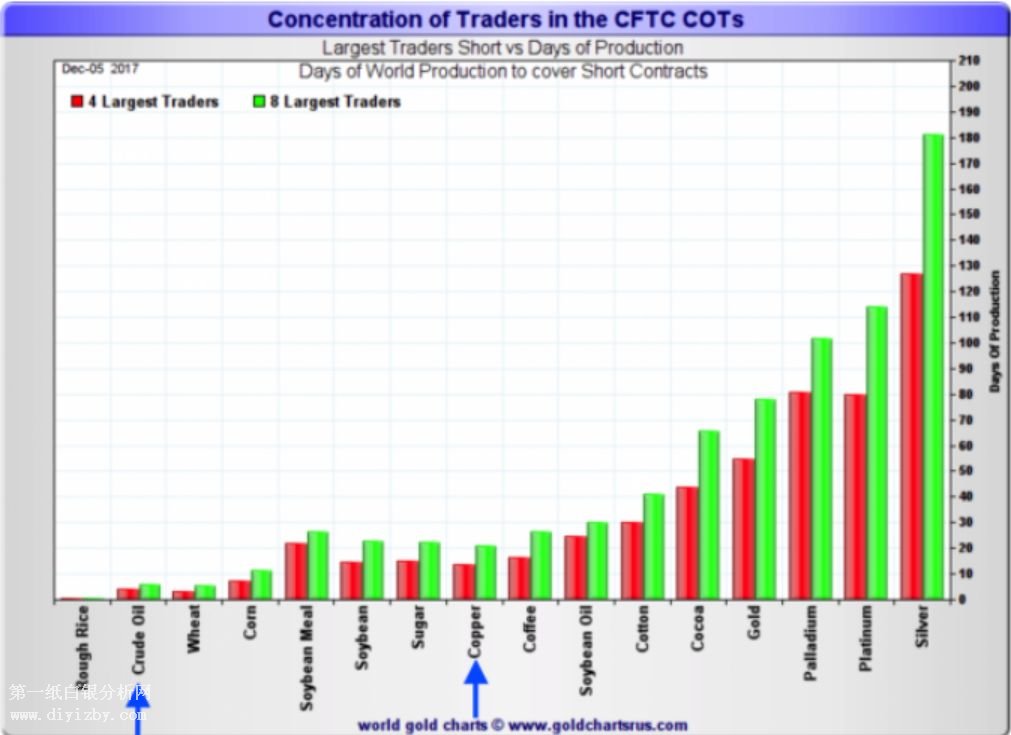 隨著美元的頂部被確認(rèn),商品部門的牛市已經(jīng)重新開始。銅、原油、甚至黃金都表現(xiàn)出上漲和突破,在未來幾個月內(nèi)價格可能會高得多。但銀有什么表現(xiàn)?首先,你需要認(rèn)識到數(shù)字銀“市場”很容易成為世界上操縱最多的市場。這不再是某種“陰謀論”。 銀行通過什么手段操縱價格?他們利用其作為“做市商”的地位來完全控制數(shù)字衍生品價格。這種操作力在COMEX白銀中的相對集中度顯示在GoldChartsRUs下面的圖表中: ![]() 你怎么知道這個突破已經(jīng)開始?下面的圖表清楚地說明了這一點。 ![]() 很明顯,這是刻意的和明目張膽的價格抑制,旨在保持價格。它會繼續(xù)持續(xù)一段時間嗎?當(dāng)然。它會永遠(yuǎn)持續(xù)下去嗎?不可能。特別是在美元不斷下跌和大宗商品價格上漲的情況下,銀行業(yè)的壓力加大到難以忍受的程度。 我們?nèi)绾沃楞y行被迫撤退? 1月下旬的高位17.70美元將是您的第一個信號。之后,任何一周收盤價高于18.50美元將是一個明確的指標(biāo),顯示這一已經(jīng)延續(xù)了19個月以上的最新的價格控制行動已經(jīng)失敗。 ![]() 總之,美國的財政狀況正在惡化,這導(dǎo)致美元急劇下跌,并且失去了對該貨幣的信心。這些因素最終將以與2010 - 2011年類似的方式刺激對商品部門的興趣上升。 白銀最終突破200周移動平均線將成為你第一個信號。