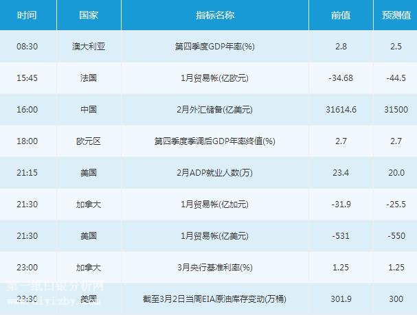此后,投資者需關(guān)注21:15公布的美國(guó)2月ADP就業(yè)人數(shù),21:30公布的美國(guó)1月貿(mào)易帳。此后,投資者還需密切關(guān)注23:00公布的加拿大央行利率決議,以及23:30公布的美國(guó)截至3月2日當(dāng)周EIA原油庫(kù)存變動(dòng)數(shù)。最后,投資者需關(guān)注次日03:00公布的美國(guó)經(jīng)濟(jì)褐皮書。