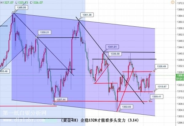 6:綜上所述,大周期旗形看漲的背景之下,美聯儲3月加息公布前維持震蕩格調,3月加息確認或將是多頭發力上攻的時間窗口,而短周期的操作維持震蕩上方關鍵阻力依然是1328為,下方1317以及非農低點1313間!