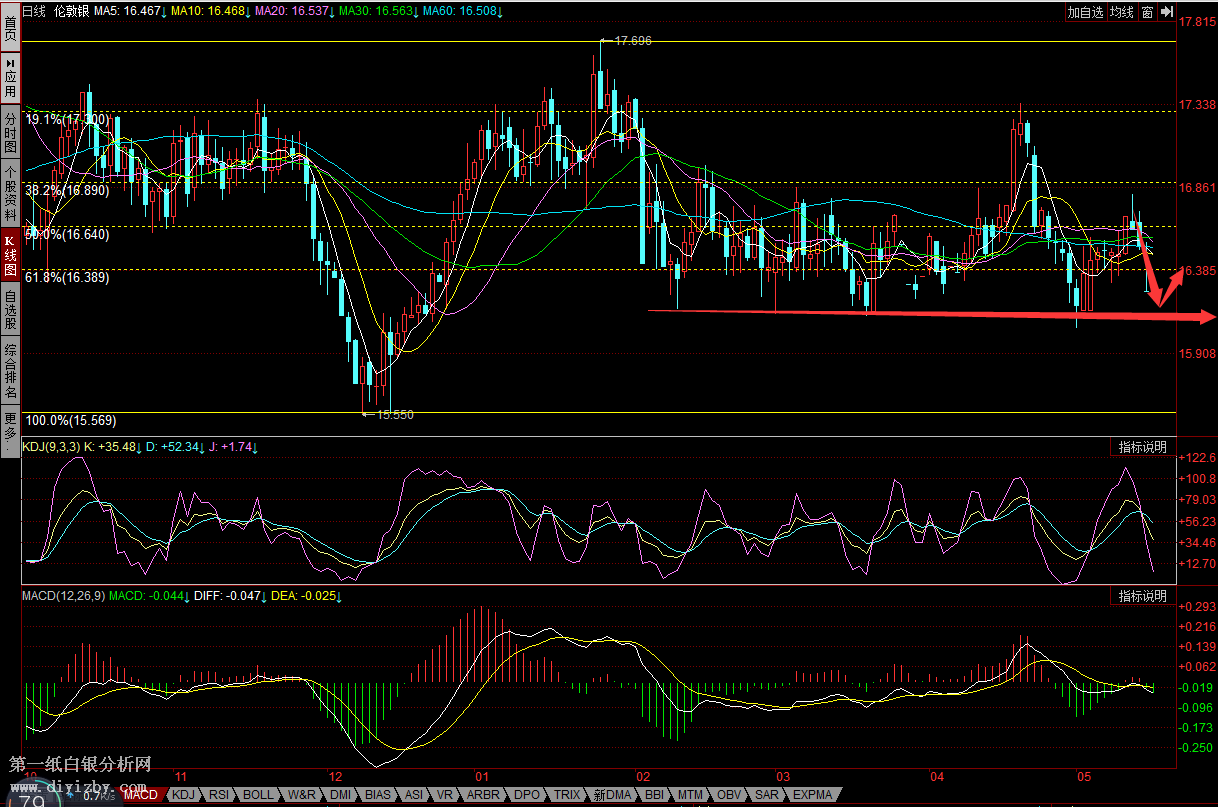 圖:白銀日K線(參考指標(biāo)MACD)