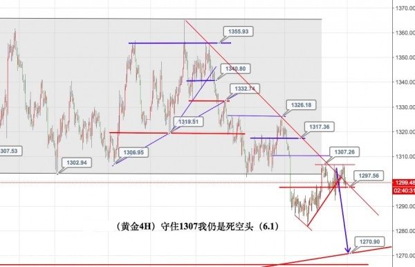 1:繼續(xù)持有1305-07區(qū)域的空單,防守在1309不變!
