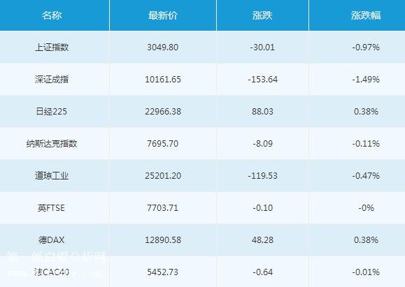 道瓊斯指數周三收盤下跌119.53點,跌幅0.47%,報25201.20點;標普500指數周三收盤下跌11.22點,跌幅0.40%,報2775.63點;納斯達克指數周三收盤下跌8.09點,跌幅0.11%,報7695.70點。