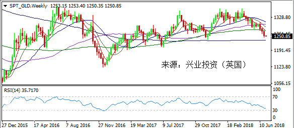 上周雖然貿(mào)易戰(zhàn)緊張情緒再次被催生,但美元指數(shù)在稍作整理之后連續(xù)多日反彈升至95關(guān)口上方,國際現(xiàn)貨黃金受拖累不斷大幅下挫,甚至一度下探1250關(guān)口下方,最終守穩(wěn)該關(guān)口,錄得連續(xù)第三周下跌,跌幅為1.3%。白銀跟隨黃金走勢,上周最低下探15.90,最終守穩(wěn)16關(guān)口,同樣為連續(xù)第三周重挫,跌幅逾2%。