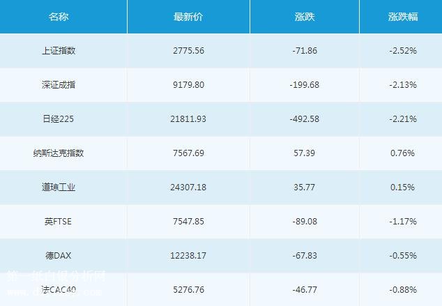道瓊斯工業平均指數周一收盤上漲35.87點,漲幅0.15%,報24307.28點;標普500指數周一收盤上漲8.16點,漲幅0.3%,報2726.53點;納斯達克指數周一收盤上漲57.47點,漲幅0.77%,報7567.78點。