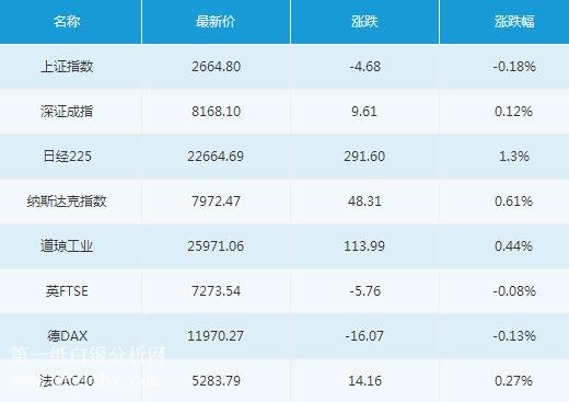 周二美股三大股指收高,因蘋果引領科技股跳漲,且油價上揚推高了能源股。道瓊斯工業指數收漲114.00點,漲幅0.44%,報25971.06點;標普500指數收漲10.76點,漲幅0.37%,報2887.89點;納斯達克指數收漲48.30點,漲幅0.61%,報7972.47點。
