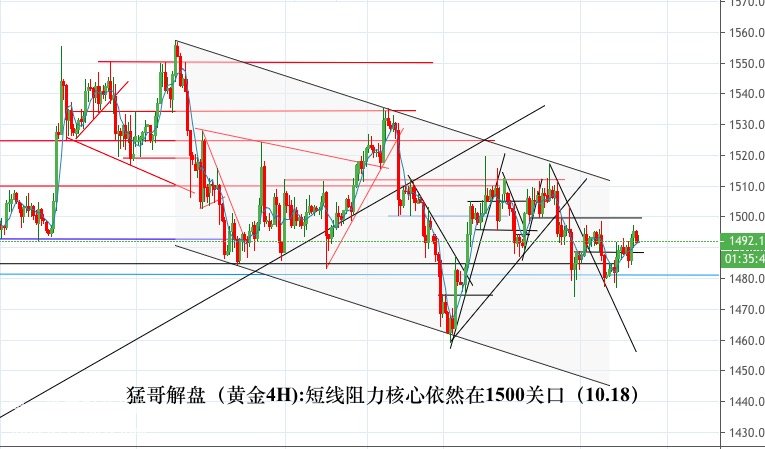 黃金:昨日市場震蕩整理中伴隨著寬幅度的震蕩,英國脫歐協議達成,美國數據不利,讓中期的震蕩走的一波三折,亞盤小幅度沖高到1494歐盤下探1484后美盤再沖高到1497,看似波幅不小,交易機會很多,但落實到交易上沖高回落探底回升的走法還是會讓很多投資者暈頭轉向,要么是沒拿住多頭的利潤被下跌給嚇跑了,要么是空頭小利沒能及時落袋反而被美盤的反攻給侵蝕!