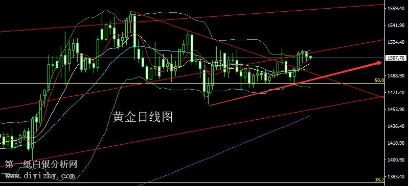 昨日黃金市場早盤開盤在1513.9的位置后行情先小幅回落給出1508.2的位置后行情在美盤受到基本面影響拉升,最高觸及到了1514.9的位置后行情在凌晨受到美指反彈的影響行情承壓回落,最低給到了1504.1的位置后行情區(qū)間整理,日線最終收線在了1509.4的位置后行情以一根下影線很長的中陰線收線,而這樣的形態(tài)收尾后,日線有調(diào)整壓力但不影響周線級別的反彈形態(tài),操作上今日先空后多,點(diǎn)位上,早盤激進(jìn)的回踩1509-1511這個區(qū)間短空止損1514下方目標(biāo)看1503和1500附近離場,下方給出1496-1498這個區(qū)間多,止損1492,目標(biāo)不放不損持有做周線級別拉升多準(zhǔn)備。