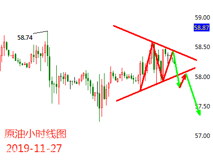 技術面上,日線原油一直維持小幅震蕩的走勢,雖然價格緩慢長高,但是日線技術面并沒有就此向上,一眾均線仍舊是走平,布林帶上軌甚至向下勾頭,MACD快慢線也是向下,多頭能量柱再次縮量,表明上方空間依舊非常小。4小上,布林帶嚴重縮口,MACD快慢線粘合在一起向下,有形成頂背離的意思,日內關注晚間EIA數據公布后原油的漲跌情況。早盤原油偏向于走弱,MA5均線轉頭向下,MACD快慢線是粘合在一起,整體來看原油大方向處于震蕩等待方向中,走弱的幾率偏大,操作上日內可以在58.30一線做空為主。