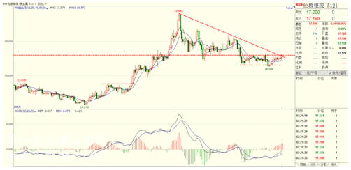 與黃金相比,白銀走勢稍強,其在震蕩中不斷攀升,上周五最高到達17.25美元/盎司,目前處于正在向上突破的狀態當中。