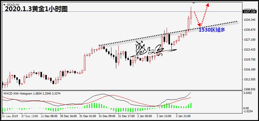 黃金1月2日(周四)新年的首個交易日上漲11.72美元,最高上漲至1531.34美元/盎司,漲幅0.77%;迎來了2020年首個交易日的開門紅。 在央行降準釋放流動性、美日貿易協議達成、以及第一階段貿易協議可能在1月簽訂的預期影響,全球股市第一個交易日全部迎來了開門紅,美國三大指數均創出歷史新高,道指收盤上漲330.4點,漲幅1.16%,報28868.80點;標普收盤上漲27.1點,漲幅0.84%,報3257.85點,納指收盤上漲119.6點,漲幅1.33%,報9092.19點。全球股市的上漲,提振全球大宗商品價格攀升,支撐黃金延續強勢走高。 此外,中東局勢有越演越烈的跡象。美國針對伊朗支持民兵組織的行動,導致美國駐伊朗大使館遇襲。土耳其議會批準了向利比亞部署軍隊的法案。中東的陰云再次籠罩在中東上空。 衡量投資者情緒的全球最大黃金ETF持倉較上日增加2.05噸,目前凈持倉895.3噸。 黃金早盤延續前一日強勢上漲,多頭再次得到延續。主因早點美國對伊拉克發動空襲,避險情緒急劇的升溫,支撐黃金強勢上漲。日內重點除繼續關注美伊局勢之外,投資者仍需關注美聯儲貨幣政策會議紀要。 ![]() 黃金策略:1530區域多,止損1525,目標1541,1550 【今日重點關注的財經數據與事件】2020年1月3日 周五 (日本東京證券交易所因市場假日休市一日) ① 15:00 英國12月Nationwide房價指數月率 ② 15:45 法國12月CPI月率 ③ 16:55 德國12月季調后失業人數及失業率 ④ 17:30 英國11月央行抵押貸款許可 ⑤ 21:00 德國12月CPI月率初值 ⑥ 23:00 美國11月營建支出月率 ⑦ 23:00 美國12月ISM制造業PMI ⑧ 23:30 美國至12月27日當周EIA天然氣庫存 ⑨ 24:00 美國至12月27日當周EIA原油庫存 ⑩ 次日02:00 美國至1月3日當周石油鉆井總數 ⑪ 次日02:15 美聯儲布雷納德等參加小組討論活動 ⑫ 次日03:00 美聯儲公布12月貨幣政策會議紀要 ⑬ 次日04:30 美聯儲卡普蘭出席小組討論活動