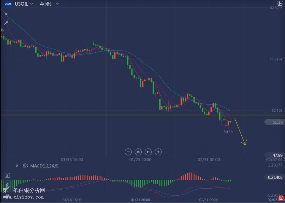 原油,最近跌的也非常的慘,從65.6跌到了50.6附近,達到了5美金,此次油價的下跌形成了一波單邊行情,高點不斷下移,低點不斷失守,這是比較明顯的單邊行情,這種行情操作起來相對就簡單一些,只要守住前面的高點,反彈去布局空單即可,直至上方高點被突破,那么此次單邊下跌的行情才能告一段落,否則,不能抱有任何幻想,左側交易有時候在單邊當中是比較危險的動作,今天的壓力位置在51.7附近。