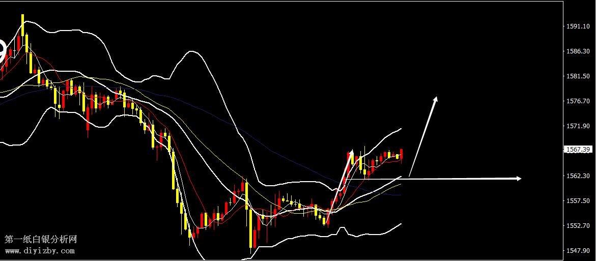 黃金隔日午后企穩1552美金震蕩反彈,成功突破1562美金高點壓制,打開上漲空間,至隔夜美盤最高反彈觸及1568美金,現價1565美金,日線報收一根實體中陽K線。