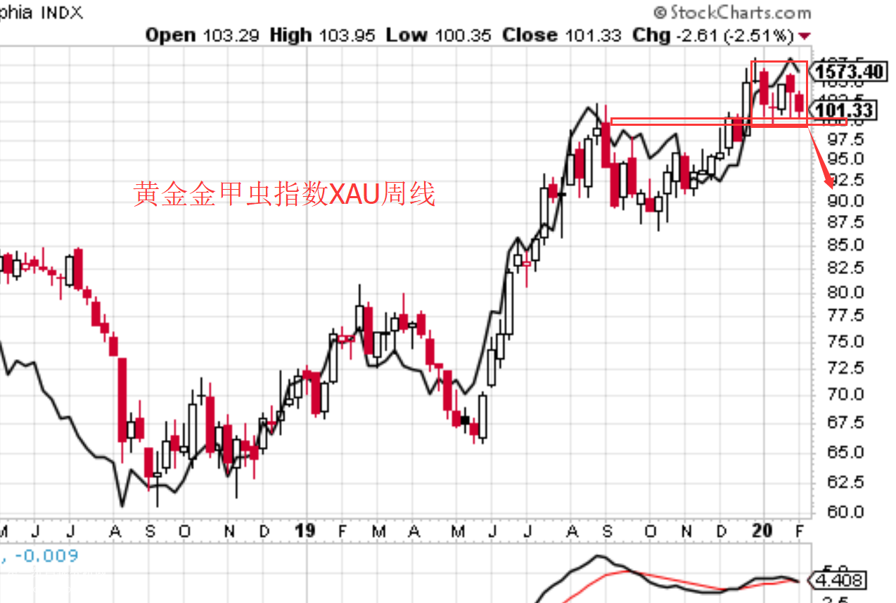個人的看法是1600-10附近是13年來的重要壓力位置,在測試到下跌后每一次的朝上測試位置都是在朝下推移的。我們相信市場會認為衛生會得到解決的,其次關注到的是黃金礦股指數出現的下跌跡象,所以目前個人還是傾向于黃金會出現一波回踩的節奏的。