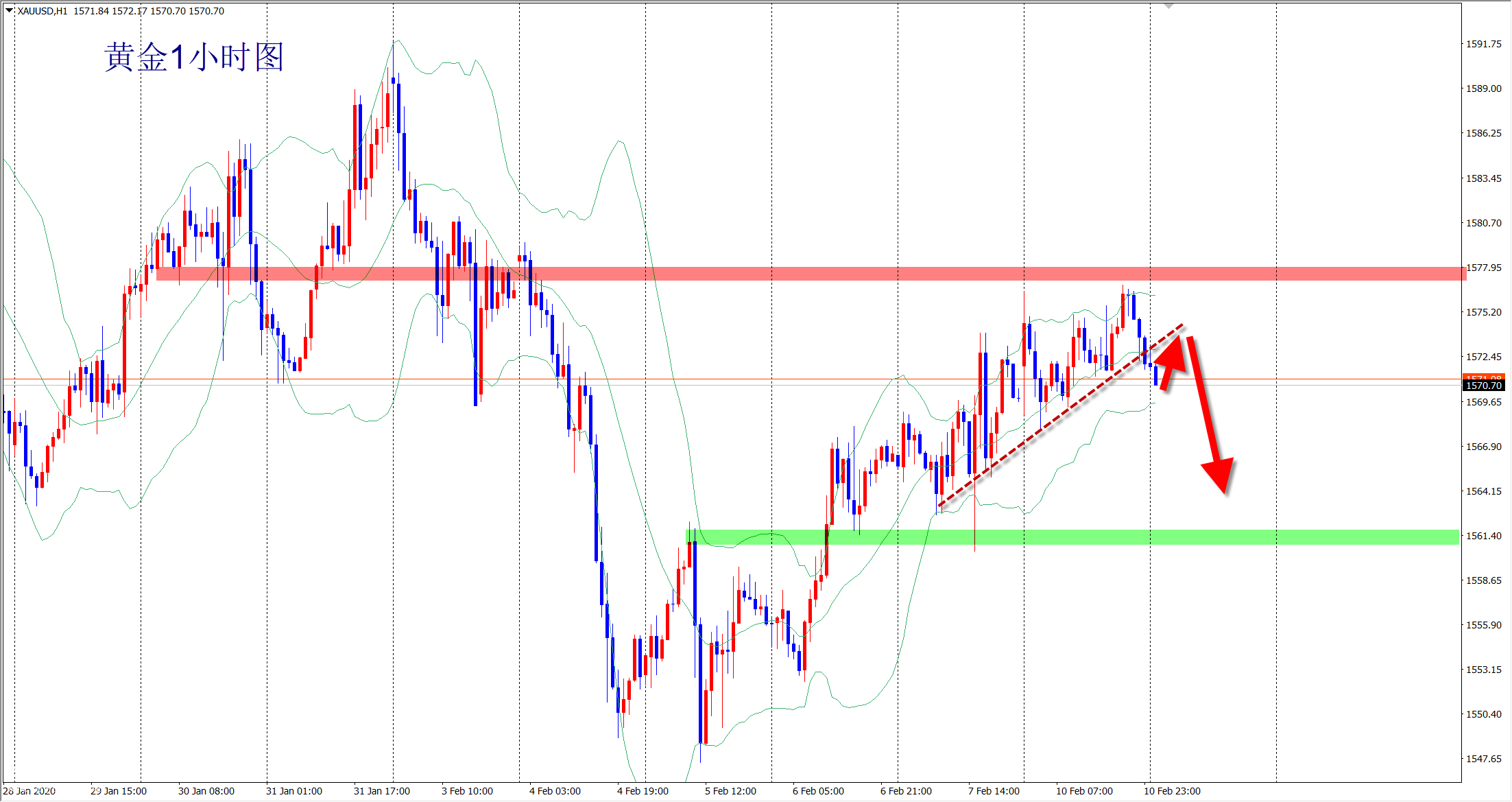早盤行情受到1570位置會反彈,反彈后我們再空,早盤反彈見1574價位附近直接空!