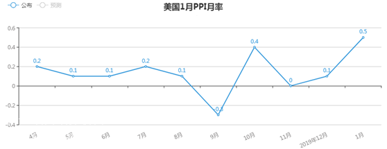 周三公布的美國1月PPI月率為0.5%,高于市場預期0.1%。