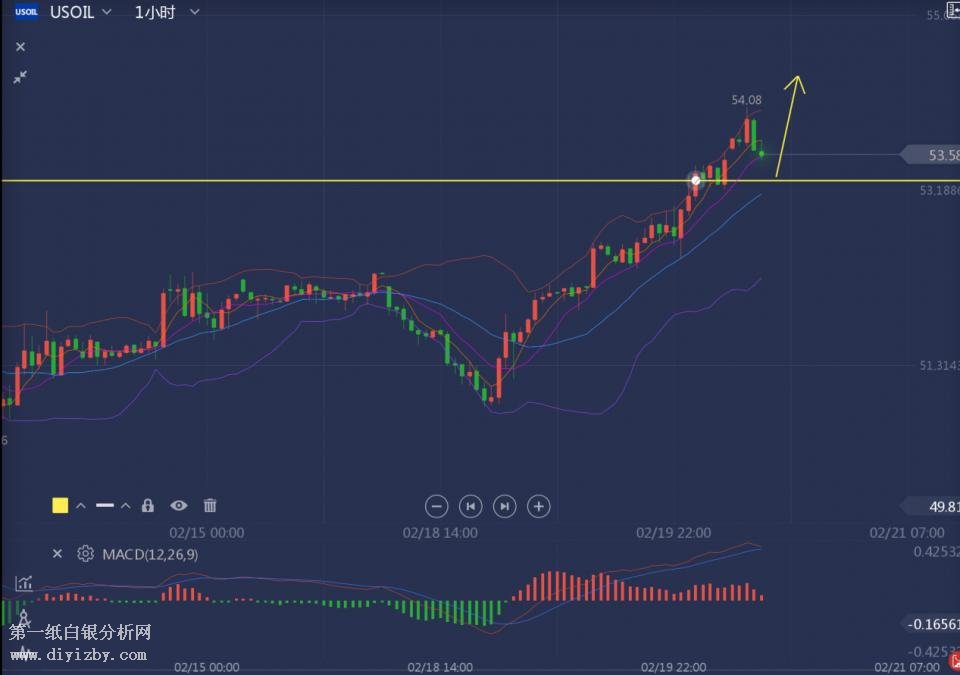 原油,經(jīng)過一輪整理之后,刷新了54.00的高點,而昨晚直播照樣給出了52.5-52.6的多,非常完美的抵達目標位置53.5的上方成功止盈,油價持續(xù)性的上漲,也同樣有人測試空,在直播間不少朋友講到油價要回調(diào),而我卻堅持了布局多單,目前沖高回落之后的關鍵所在是在跳空的位置以及1小時中軌附近53.3,這也將成為今天入場多的關鍵位置。