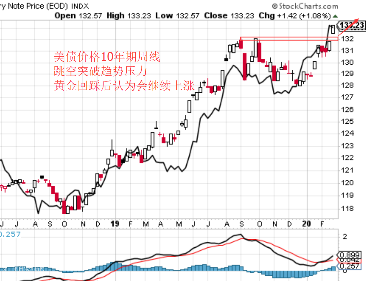 暫時(shí)來(lái)看全球范圍內(nèi)的衛(wèi)生才是影響市場(chǎng)避險(xiǎn)情緒的風(fēng)向標(biāo),一時(shí)半會(huì)沒(méi)得好轉(zhuǎn)的情況下黃金還是維持看漲的思路。對(duì)于避險(xiǎn)情緒最直觀的表現(xiàn)就是美債價(jià)格走勢(shì)周線上是突破了前期壓力并且走出高點(diǎn)了。