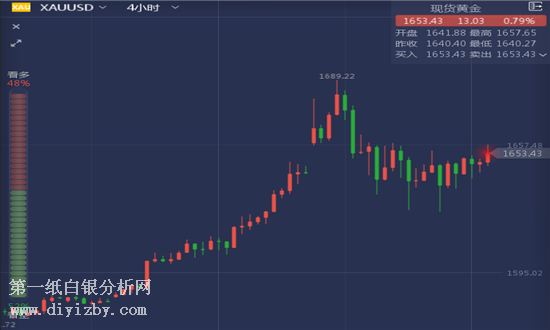 技術(shù)面,技術(shù)面,昨日黃金再次進入震蕩走勢,前兩日強勢拉升,近兩日震蕩走勢,勢必在告知一個信號,就是黃金還有繼續(xù)上攻1700的動力,強勢行情回落修正只是對指標的修復(fù)而已。今日短線方面,黃金下方重點支撐依然再1624,這里是昨日連續(xù)兩次試探低點,這里不能再失守,否則黃金會奔向1611一下尋求支撐,這樣一來,黃金整個周期就會比較長,相對來說,在1624之上反彈會更加容易,另外上方1658是關(guān)鍵,只要反彈能突破這里,黃金多頭會再次加速,除此之外,短線下方1640支撐也需關(guān)注一下。