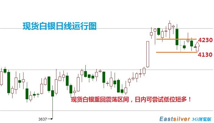 盡管從長期的趨勢來看,現貨白銀仍然處于下行的趨勢之中,但是中期來看,現貨銀直接跌破3600價位并延續下跌走勢的時機還未到來,在今后一段時間內現貨白銀有很大的可能會延續中期的震蕩走勢,震蕩區間在3600-4600,而目前銀價已經運行到震蕩區間的下線,所以對于中線投資者來講,我們認為目前可以考慮適當的分批布局多單,而對于短線投資者來講,今后一段時間也應該盡量的以多頭操作為主,預計此輪中期走勢可能會持續3-6周的時間,如果銀價跌破3600價位,則我們就需要重新判斷中線趨勢!