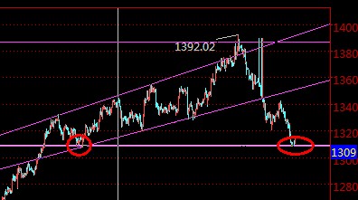白銀60分鐘K線(圖2) 黃金60分鐘K線(圖3) 從圖2和圖3的圖形上來看呀,這里暫時黃金白銀受到支撐,短期內在進行反彈